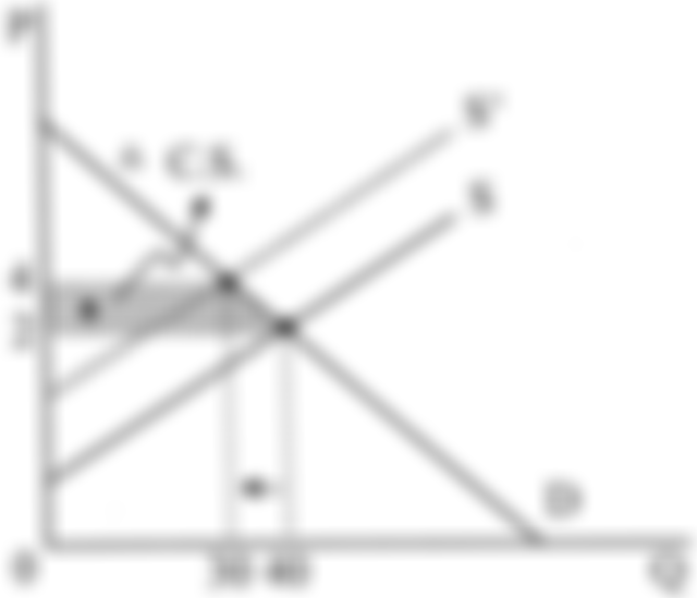 假設檳榔的需求函數是Q=50-5P,Q 與 P 分別代表檳榔的數量與價格。目前檳榔的價格是 2。假設政府擬限制檳榔的生產,一旦檳榔的供給減少,價格將上漲至 4,則檳榔消費者願意付多少代價,阻止政府實施管制?