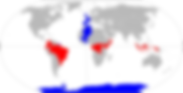 赤道(紅)及本初子午線(藍)穿過的國家和...