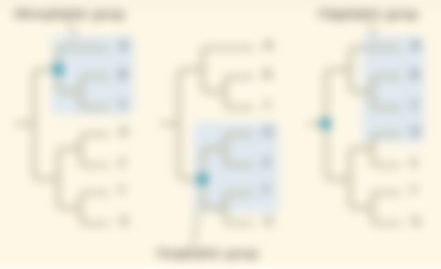1. 若目前已知甲乙丙丁戊己庚辛壬癸等十個分類群,其親緣關係如圖 3(庚辛壬癸分別為此演化樹距其最近的節點)。請問以下哪些分類群的集合,符合並系群 (paraphyletic group)的定義呢?