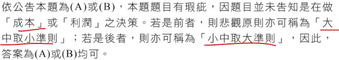 即「大中取小」原則,亦即估計其憾事的最大程度,從中選出使憾事或反效用所示的機會成本達最小的方案。