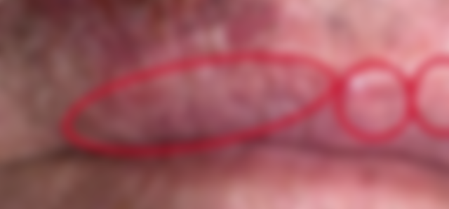 (B)約有一半的個體於唇紅緣區可發現皮脂腺
