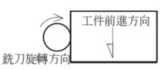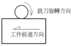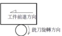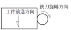 207. 在傳統銑床上以直徑 20mm 端銑刀作深度 50mm 側邊粗銑,應避免下列何種銑削方式?
