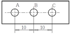 209. 若銑床 X 方向的進給手輪每格刻度 0.02mm,一轉 2.5mm,已知背隙有5 格 。要鑽三孔,如圖所示,若手輪正轉定位 A 孔,鑽完後,再鑽 BC兩孔,下列定位過程何者有誤?