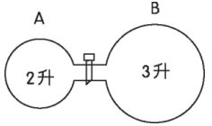 24. 附圖中,有A、B玻璃球,活門未開啟前,A與B球內之壓力分別為PA=0.70 atm與PB=0.60 atm。在下列各選項情況下,將活門開啟,溫度維持不變,當再次達平衡時,計算球中氣體總壓力,正確者有?