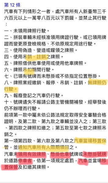 (C)使用他車牌照駕駛車輛