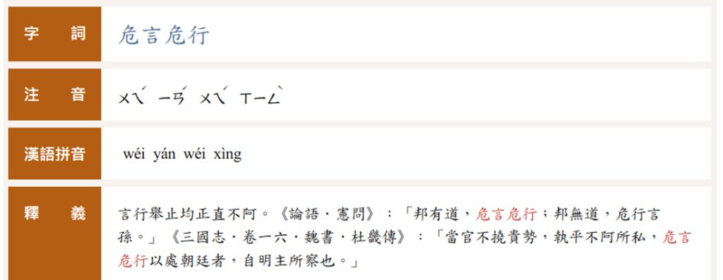 「危言危行」類題整理