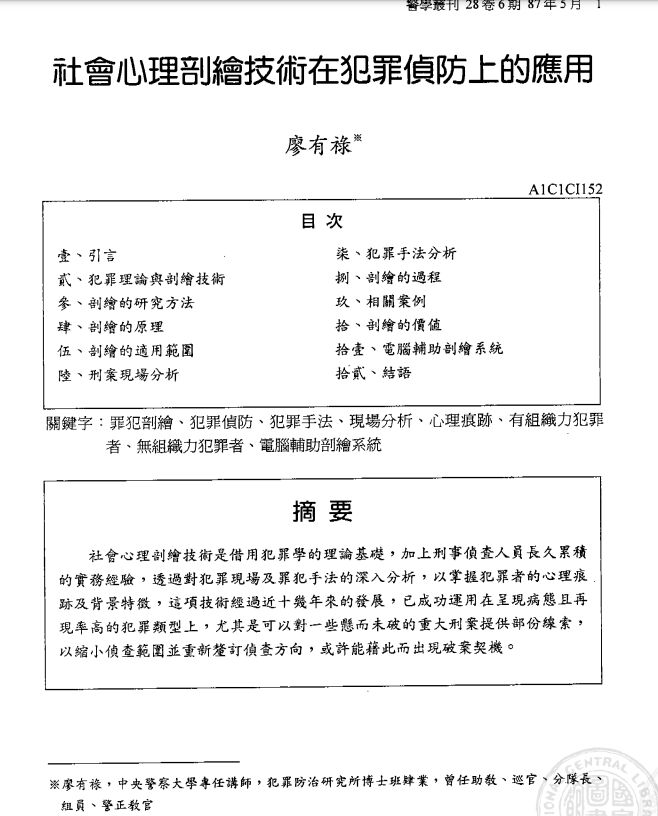 114年 - 114 臺灣警察專科學校_甄選入學中央警察大學初試試題:犯罪偵查學#125957