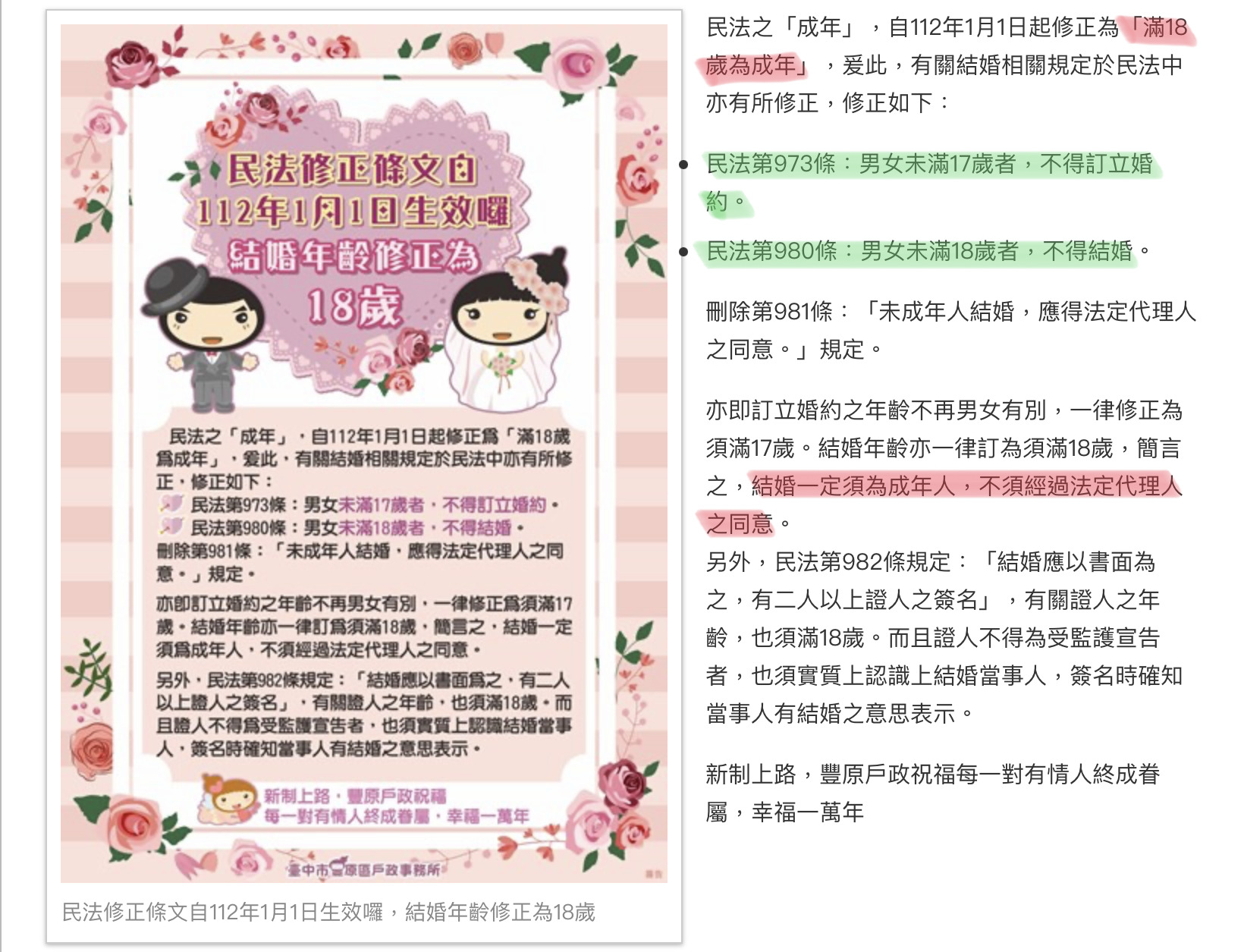 (B)男未滿 18 歲,女未滿 16 歲者,不得結婚