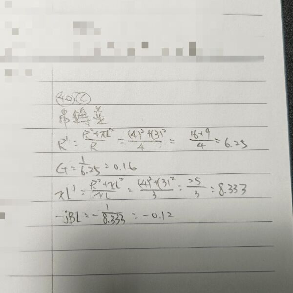 40 若將圖(a)之串聯電路轉成等效之並聯電路圖(b),則 G 與 B 分別為多少姆歐?