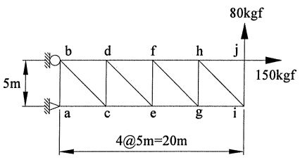 45. 下圖所示桁架結構中,各桿件受力何者為正確: