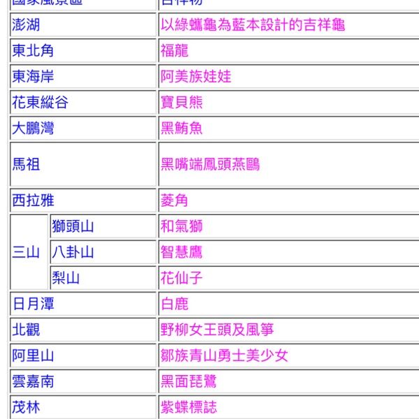 5. 請從下列國家級風景區的吉祥物敘述中,找出何者為錯誤之吉祥物?