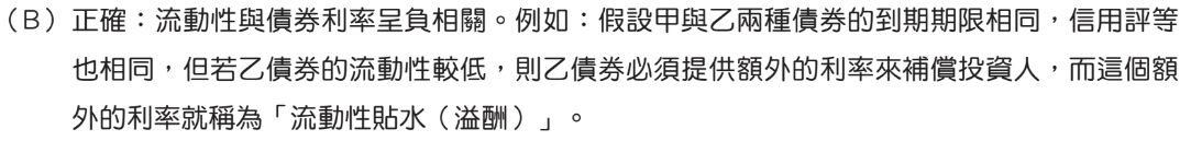 (E)金融工具變現時所花費的成本及費用愈高,其利率愈高
