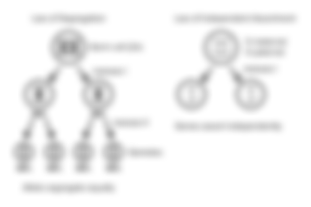 (C) The law of independnet assortment states the pair of alleles for a given gene segregates into gametes independently of the pair of alleles for any other gene.