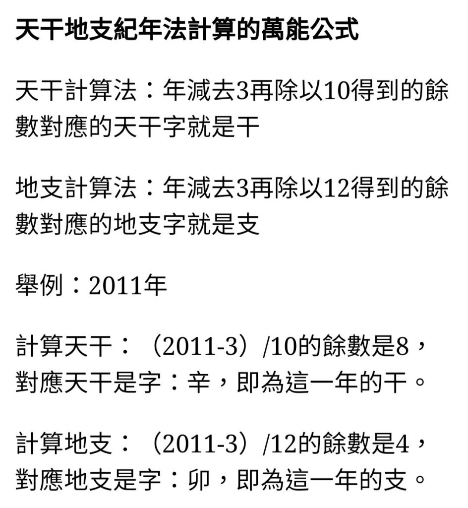 西元二○一○年,歲次庚寅,則次年(二○一一年)歲次為: