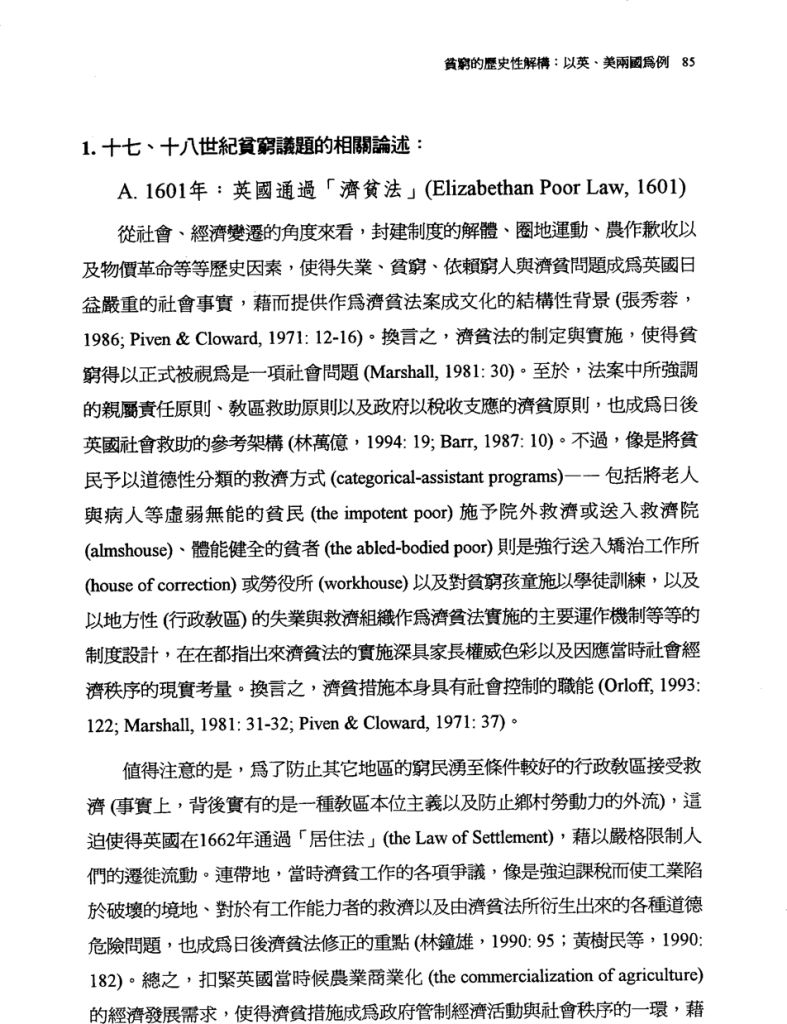 F. 把貧民分為三類:健壯的貧民、無力工作的貧民、失依兒童