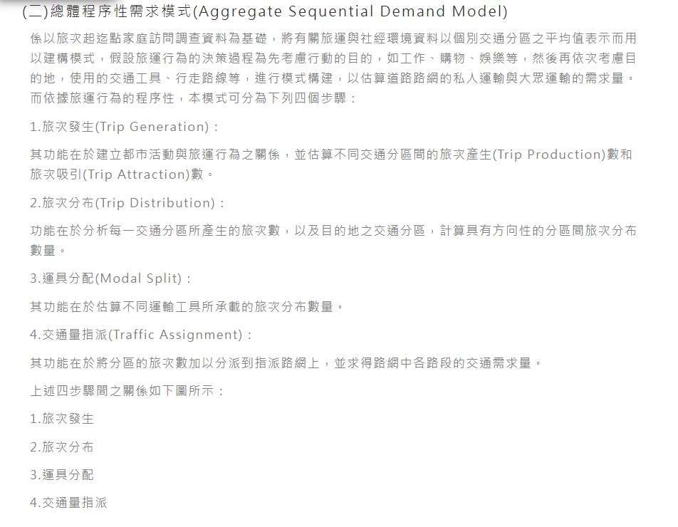 (D)旅次發生→旅次分佈→運具分配→交通量模擬