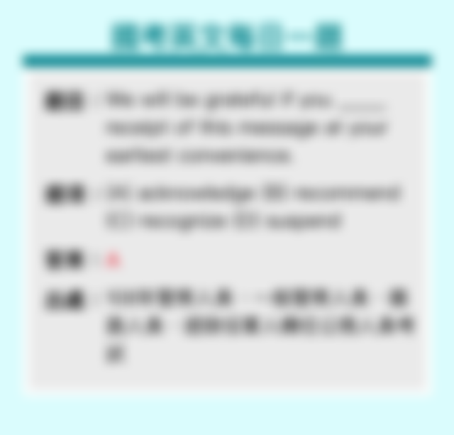 (A) acknowledge 承認;就……表示謝忱;告知收到(信件等);對……打招呼 (B) recommend 推薦,介紹;建議,勸告 (C) recognize 認出,識別;認識;正式承認;認可,認定 (D) suspend 懸掛;使飄浮,使懸浮;使中止;使有懸念;使停職;使暫停參加活動;使休學;暫緩作出(決定等);暫緩執行(刑罰等)