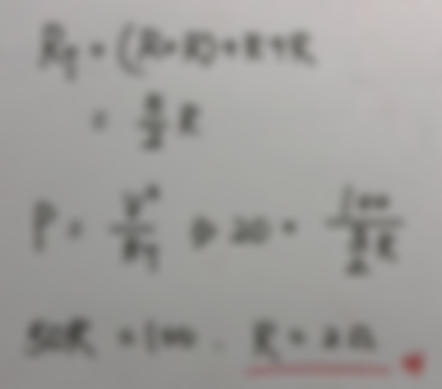 P=(V*V)/Rt=>Rt=(v*v)/P=100/20=5=2.5R