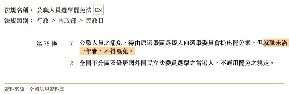 (D)公職人員就職未滿 1 年者,不得罷免
