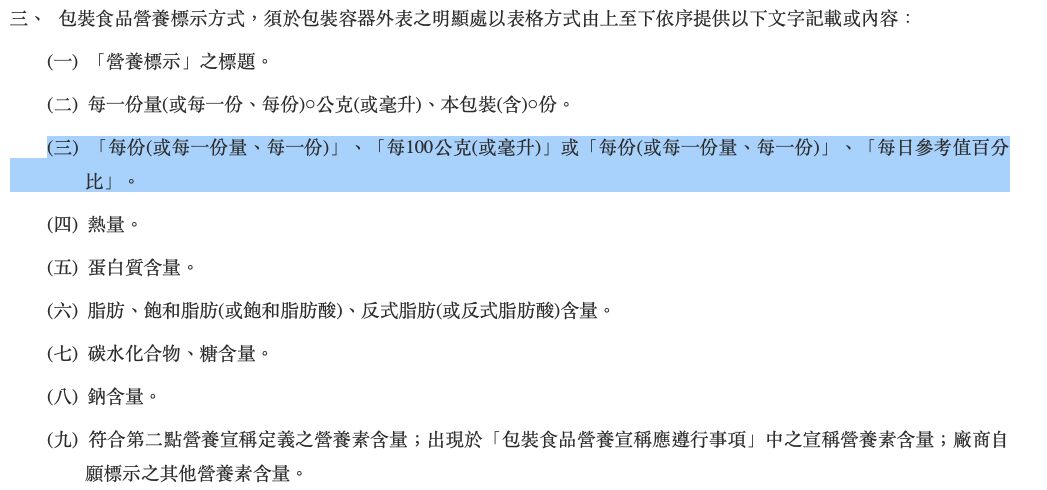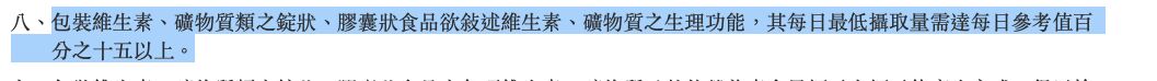 市售包裝維生素礦物質類之錠狀膠囊狀食品營養標示」所需之營養標示規定