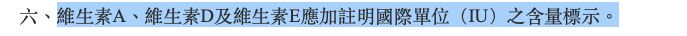 (C)維生素 A、維生素 D 及維生素 E 應另加註以國際單位(IU)之含量標示