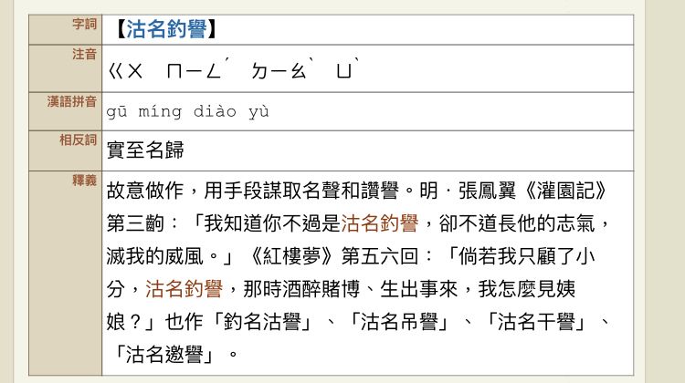 (C)沽名釣譽 ✔