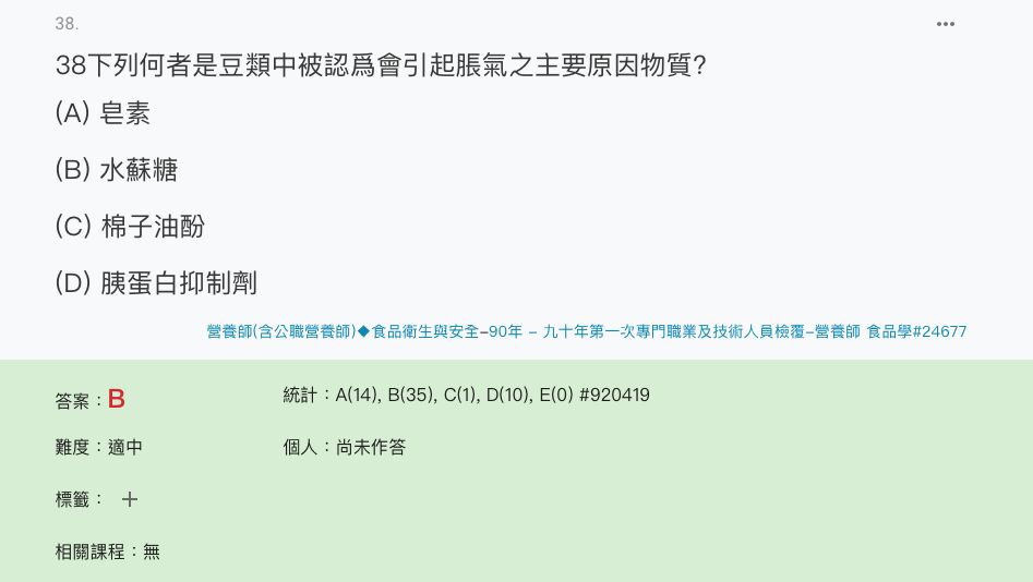 1 攝食豆類後常有的脹氣現象,是由於豆類中的那一種糖被大腸中細菌代謝產氣所致?
