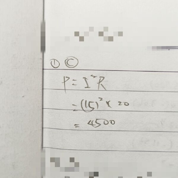 1 若電流為 15 安培時,試問在 20 歐姆電阻器上所消耗的功率為若干?