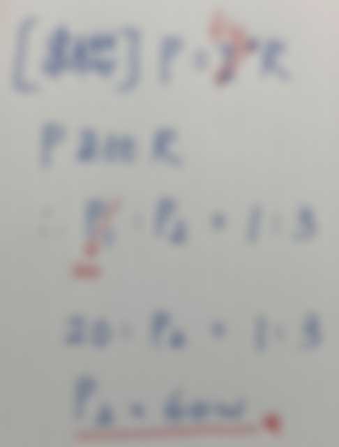1 兩個電阻 R1 和 R2 的電阻值比為 1:3,將其串聯接於一電源,若 R1 的消耗功率為 20 W,則 R2 的消