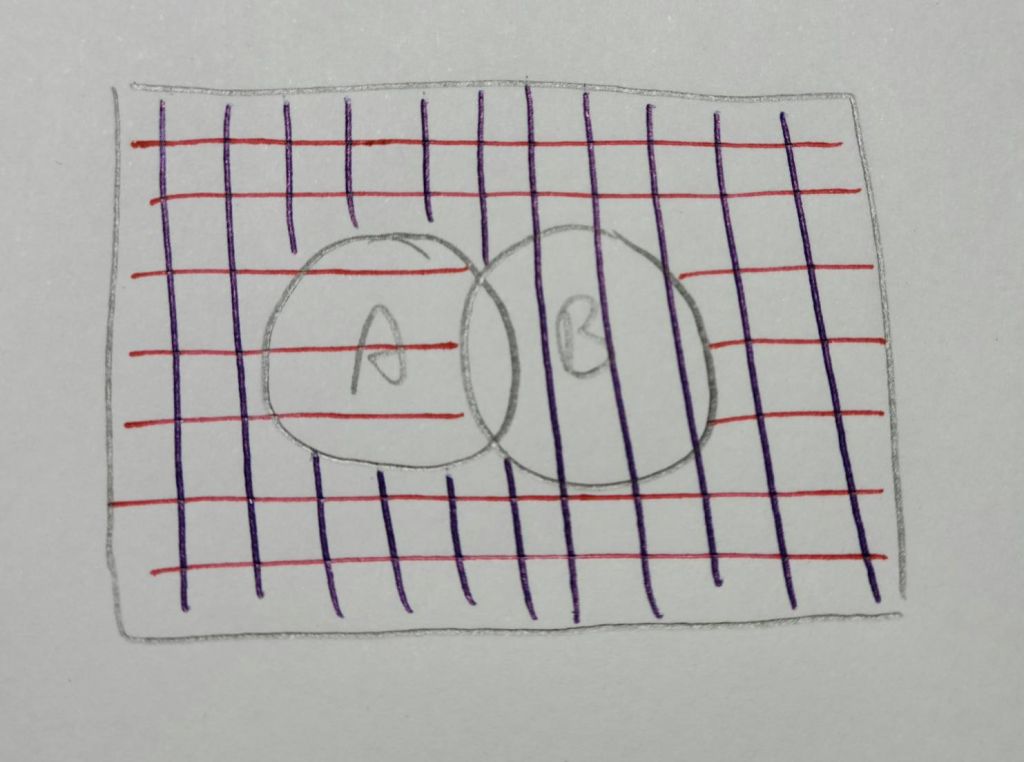 就是藍紅線相交的部分,也等於1-P(AUB)的部分,可得1-2/3=1/3