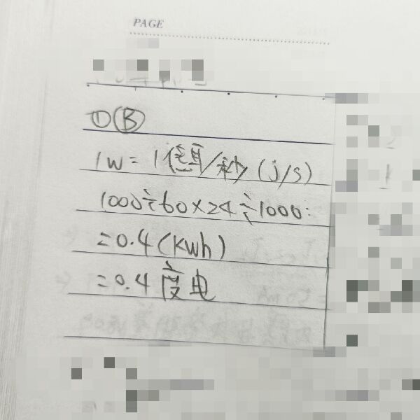1 某電器 1 分鐘所消耗之能量為 1000 焦耳,則連續使用 1 天後共消耗多少仟瓦小時(kWh)?