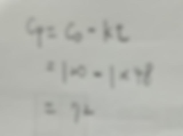 Ct=C0-kt Ct=120-1*48=72mg/mL