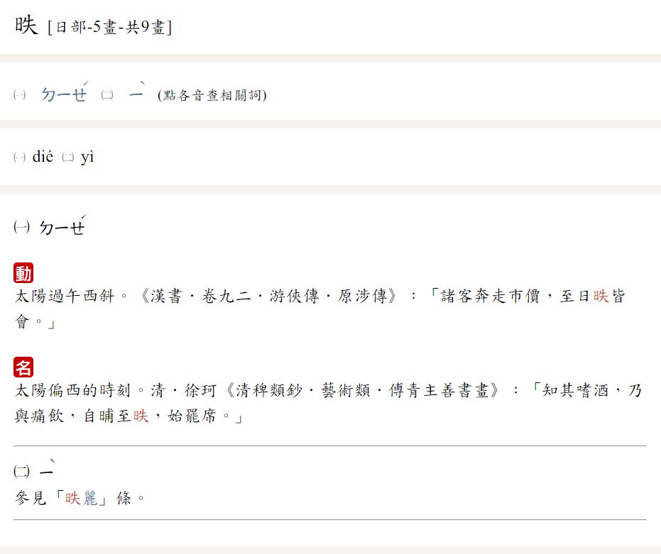 (B) 自晡至「昳」ㄉㄧㄝˊ/形貌「昳」ㄧˋ麗