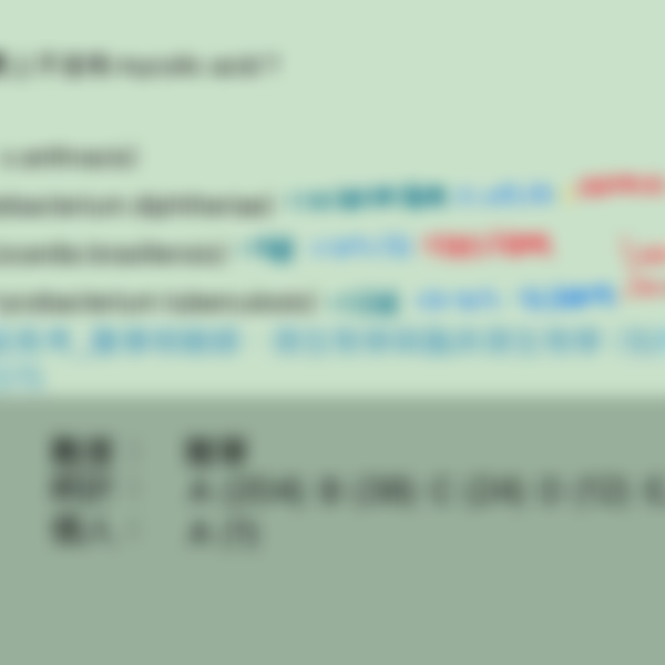 1.下列何種細菌細胞壁上不含有mycolic acid?