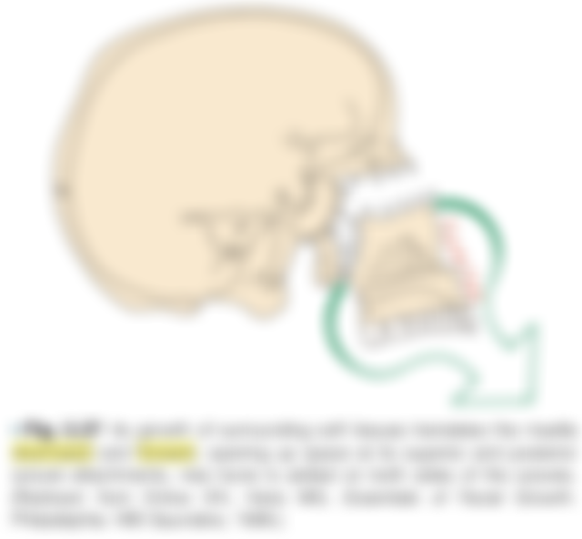 (C)當上顎骨往前下方生長,後方與顱底交接的骨縫處呈骨沈積(apposition)