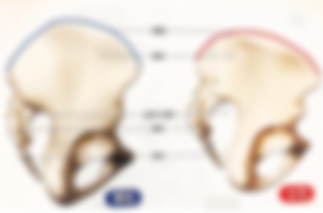(A)男性之恥骨弓(pubic arch)的角度較女性為大