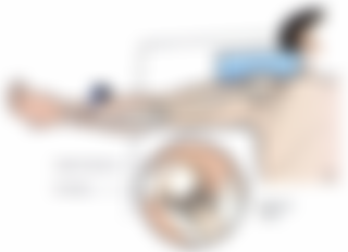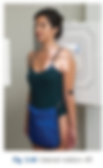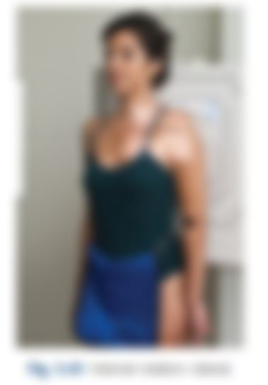 Transthoracic lateral Lawrence method(有外傷) 患側貼片及旋中姿勢(掌心貼緊褲縫)、離片側上舉