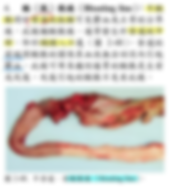 織呈黃綠色 ③血液豐富的臟器與腸管接觸,臟器表面呈黑色 ④心肌比骨骼肌屍僵(rigor mortis)產生快