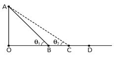 1. 如圖所示,OD 是水平面,AB 是斜面,已知物體與接觸面間之動摩擦係數為定值。今此物體以v0初速從 D 點出發沿 DBA 滑至 A 點時速度恰等於零;如果斜面改為 AC,欲使同一物體以v ′的速度從 D 點出發沿 DCA 滑至 A 點時,速 度亦恰等於零,則物體之初速度量值v ′與v0大小之關係為何?