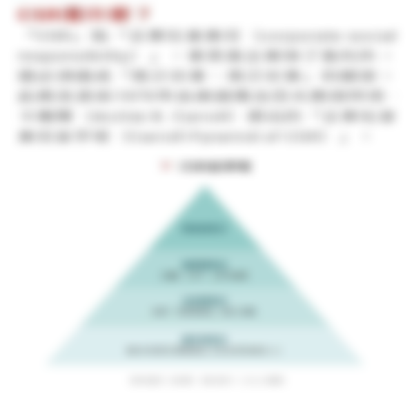 學者 Carroll(1991) 提出的企業社會責任(Corporate Social Responsibility, CSR)四大構面: