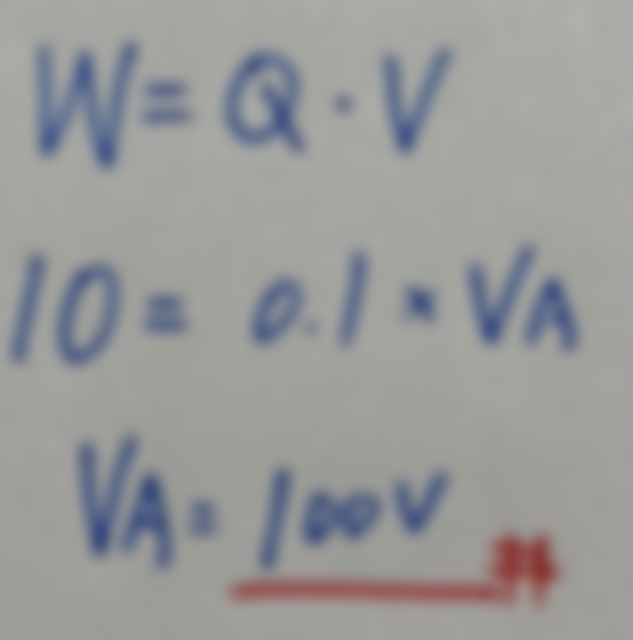 1. 將電量為0.1庫倫之正電荷,自無窮遠處移至電場A點,若其作功10焦耳,則A點電位為
