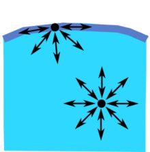 2.在液體與氣體的分界面上的液體分子在各個方向受到的引力是不均衡的(見圖解),造成表面層中的分子受到指向液體內部的吸引力,並且有一些分子被「拉」到液體內部。因此,液體會有縮小液面面積的趨勢,在宏觀上的表現即為表面張力現象。