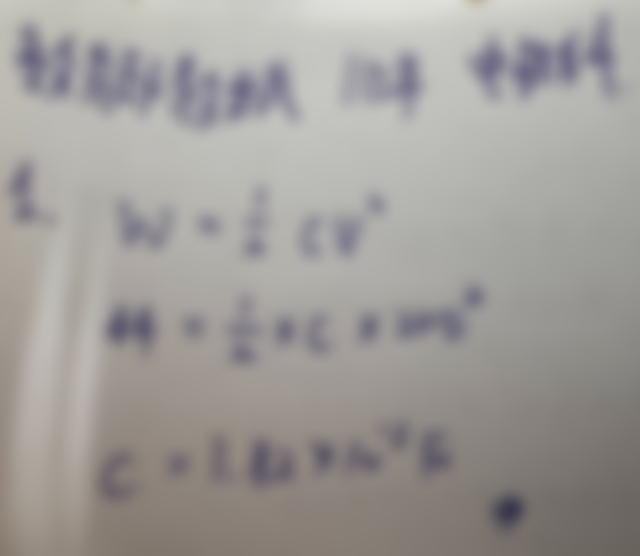 1. 電容器接上220V的電源,若要儲存44J的電能,試求電容器電容量為多少法拉(F)?