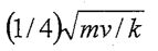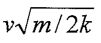 1. A block of mass m is initially moving to the right on a horizontal frictionless surface at a speed v. It then compresses a spring of spring constant k. At the instant when the kinetic energy of the block is equal to the potential energy of the spring, the spring is compressed a distance of: