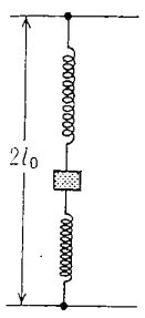 1. A block with mass m is vertically attached between two ideal springs with the force constant k and vertically oscillates (Fig. 1). What is the angular frequency?