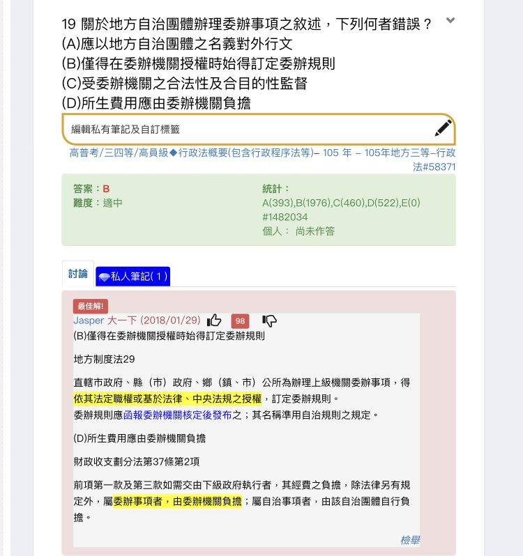 (B)地方自治團體執行委辦事項時,得訂定委辦規則
