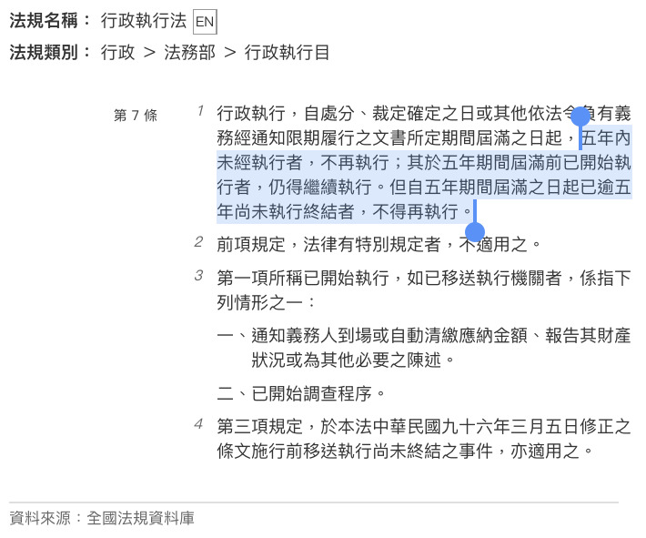 行政執行不再執行: 5 年