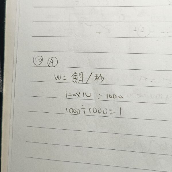 10 某一燈泡為 110 伏特、100 瓦特,若加上 110 伏特額定電壓使用 10 小時,共消耗幾度電?