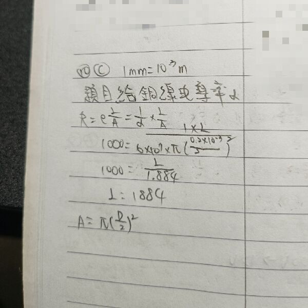 10 設一銅導線之導電率(conductivity,σ)為 6×107 S/m,直徑為 0.2 mm,則約要截取多長的導線才能 得到 1 kΩ 的電阻值?
