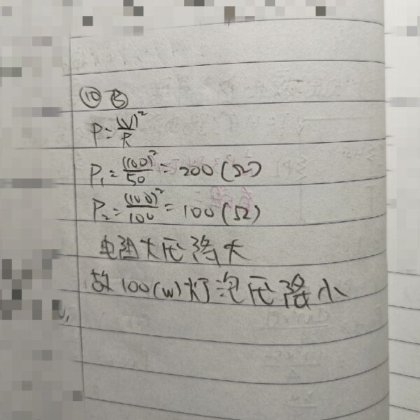 (A) 50 W 燈泡 (B) 100 W 燈泡 (C)兩者相同 (D)無法判斷